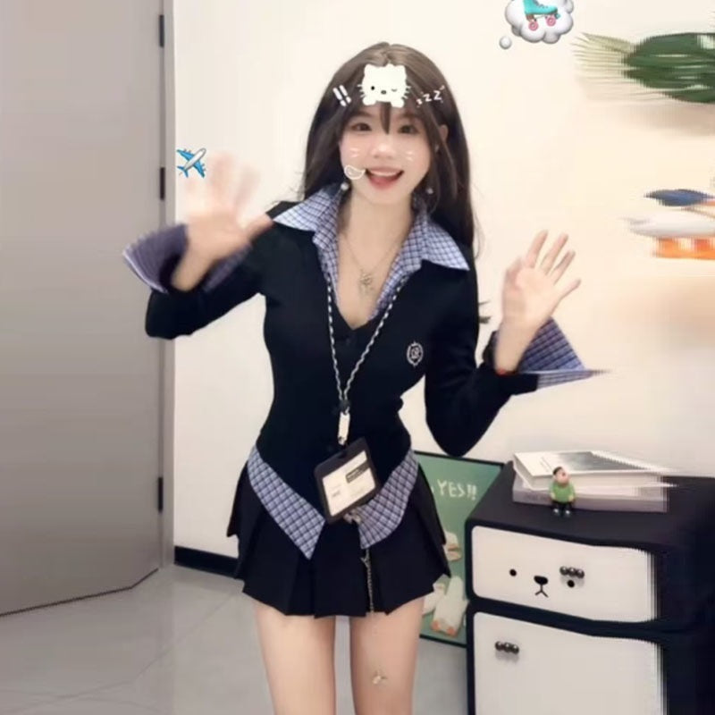 Product information: Fabric name: Dron Color: navy blue Sleeve type: regular sleeve Main fabric composition: Dralon Size: S,M,L,XL Version: Other Style type: private clothing socialite Sleeve length: long sleeve Style: adult ladies like women's style